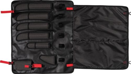 - Holds (1) Large knife up to 12 inch overall; (3) Medium knives up to 9 inch overall; (1) small knife up to 7 inch overall; (1) Shears; (1) Sharpener; (1) Pocket sleeve
