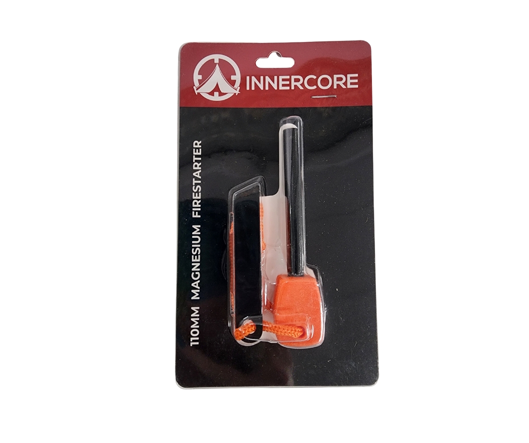 The Innercore 110mm Magnesium Firestarter is a reliable ignition tool built for camping, hiking, and emergency situations. With a long flint rod and an integrated blade, it’s made to produce sparks when you need them most—no matter the conditions.