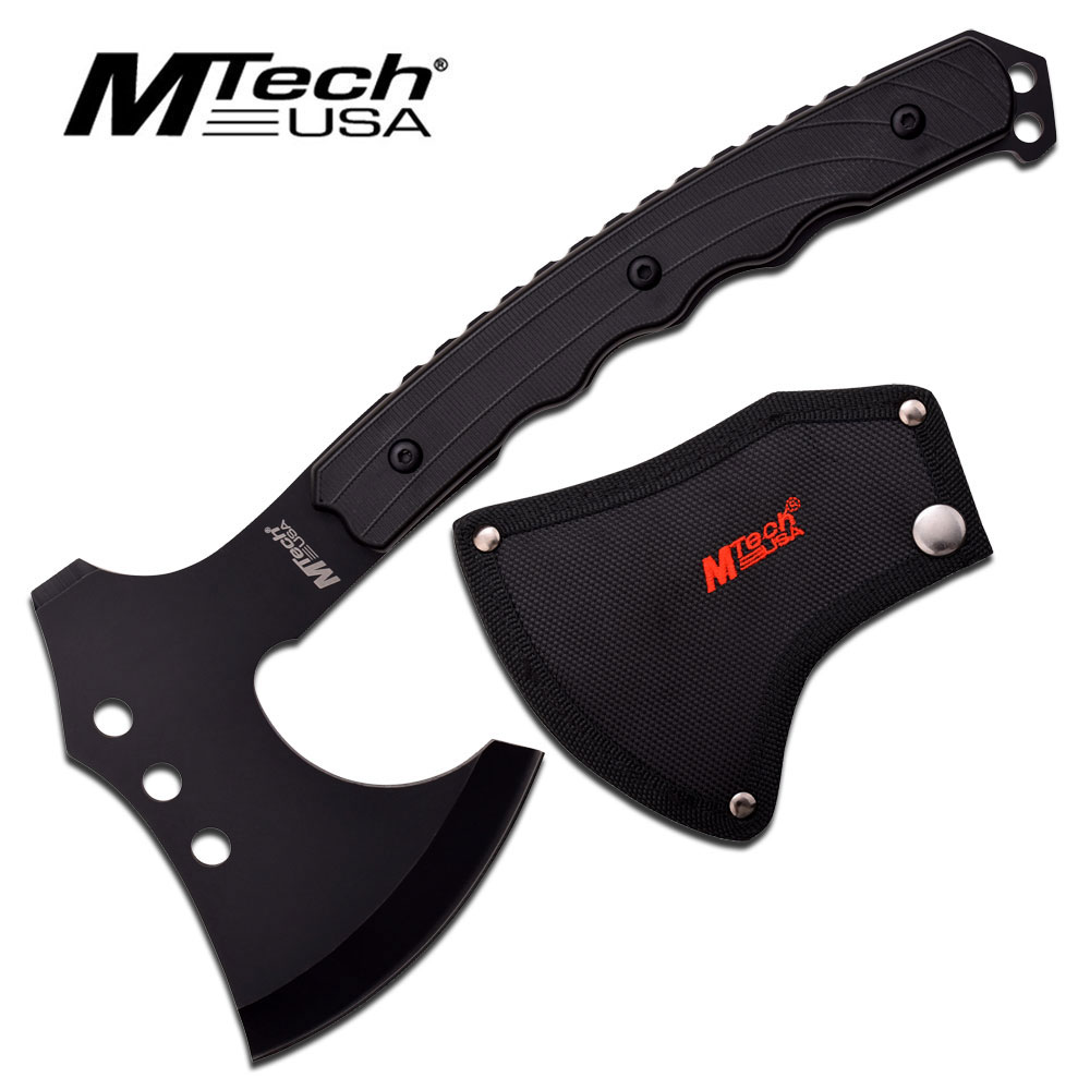 Black MTech tactical axe with 4mm thick blade and black nylon sheath