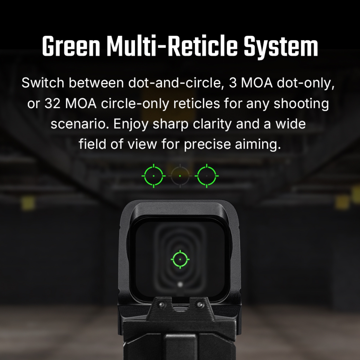 - 3 MOA Dot & 32 MOA Circle: Switching between dot-and-circle, dot-only, or circle-only reticles, you can tailor your aiming solution to any shooting scenario. The sharp and bright dot-and-circle reticle provides a cutting-edge aiming experience.