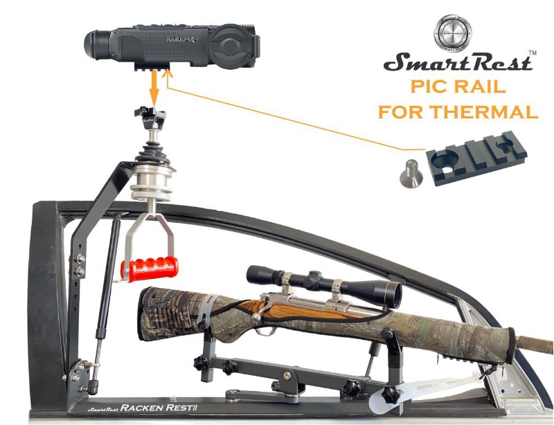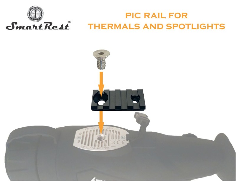 This SmartRest rail fits on spotlights with a flat base for a mounting point and also adapts to a thermal monocular to make it a quick release system and compatible with SmartRest Mounts and swivels.