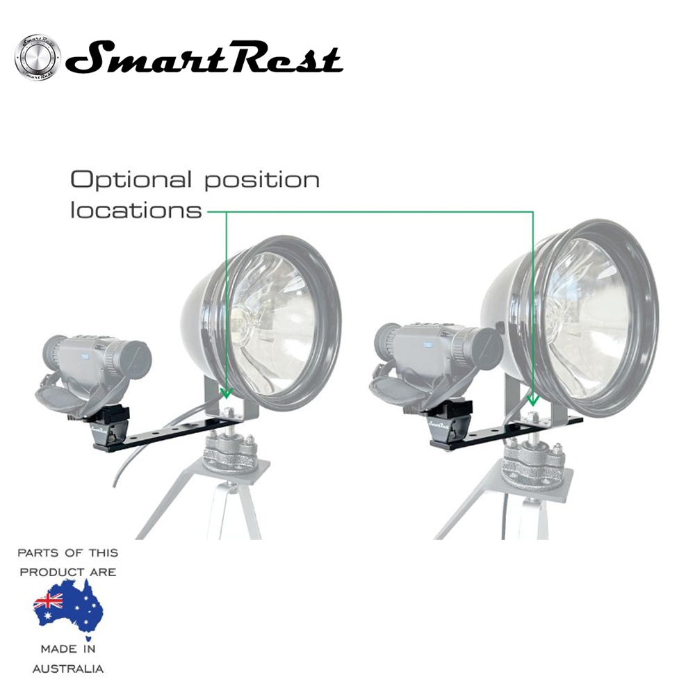 The SmartRest Single QR Mount includes a 3mm thick flat bar with 6 holes for mounting & 1 x Quick Release rail clamp attached.