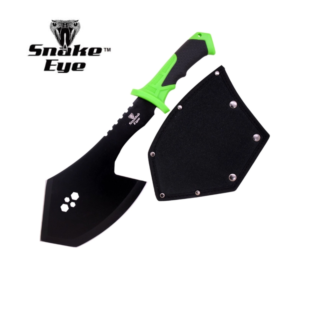 The Snake Eye Tactical Axe is a beast built for the bush. With a full tang 17" profile and an 8" black-finished stainless steel blade, it's ready for chopping, clearing, or campfire duty. The heavy-duty ergonomic handle gives you control when it counts, and the included nylon sheath keeps it secure on the move.