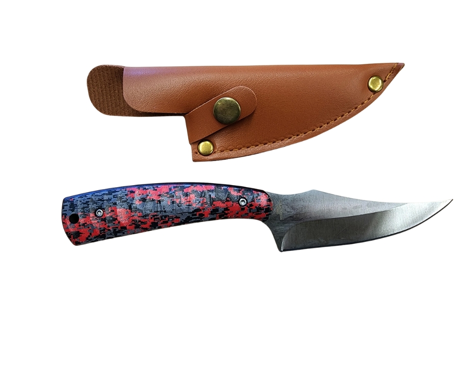 This Fixed Blade Hunting Knife combines classic utility with rugged reliability. Featuring a fine edge clip point blade and full tang construction, it’s ideal for skinning, carving, and camp tasks. Comes with a leather sheath and retail boxed, ready for the field or display.