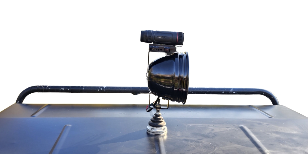 Thermal Monoculars are often run in tandem with a Spotlight. These can be hand-held, but are often mounted on top of the spotlight itself or side-by-side, streaming to the user's tablet or smartphone via bluetooth or wifi.